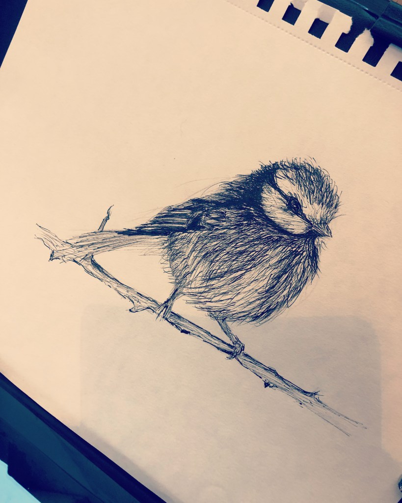 Blue Tit: something I completed after the course – I think I enjoy sketching birds…they all seem to have their own energy and personalities and it is akin to characterisation in the snapshots I create in my poems.